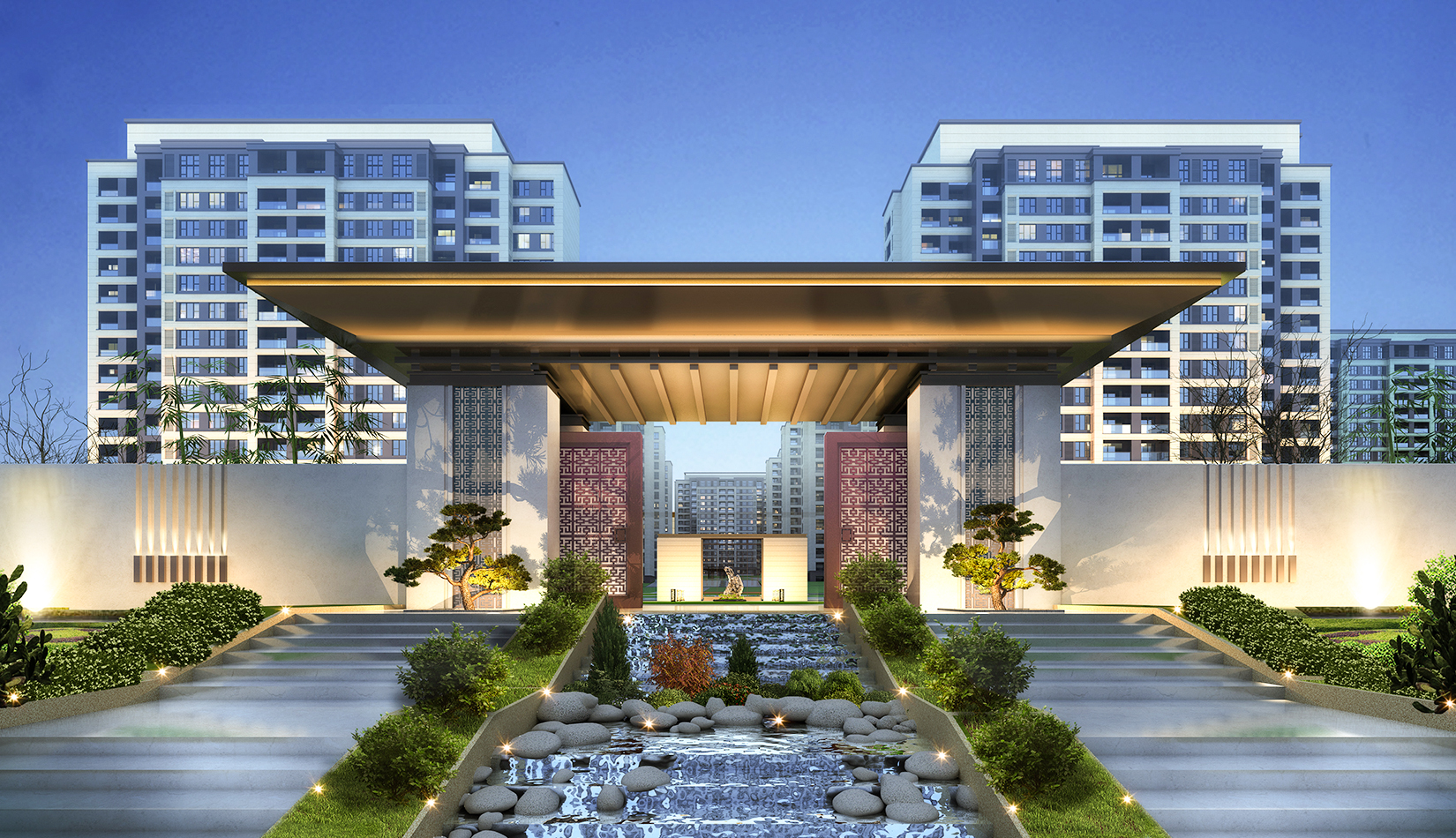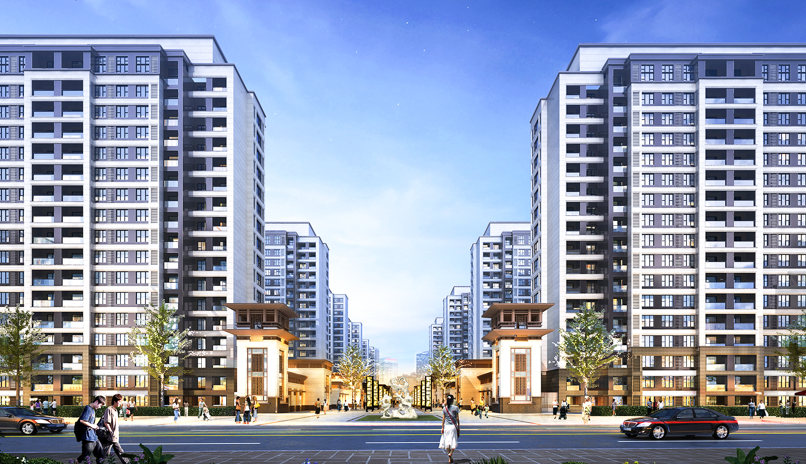 以景觀均好性原則布局住區(qū)景觀、確保各組團均享有良好的景觀觀賞空間和公共交流空間。