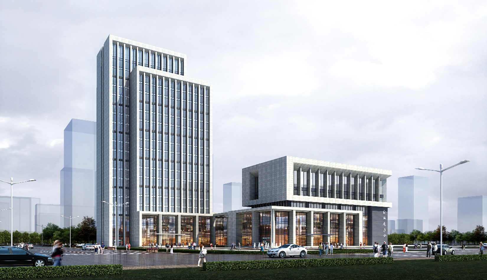 該項(xiàng)目的規(guī)劃布局順應(yīng)城市空間肌理,十字交叉口處布置景觀廣場形成退讓,避免了對周邊建筑和道路的壓迫感。