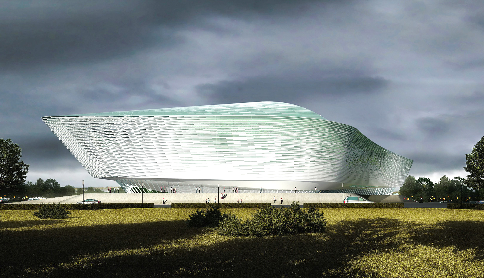 文化館建筑是整個校園軸線上的重要組成部分,主要包含禮堂功能和文化藝術(shù)教育與練習(xí)功能。在為校園服務(wù)的同時,面向社會大眾開放。